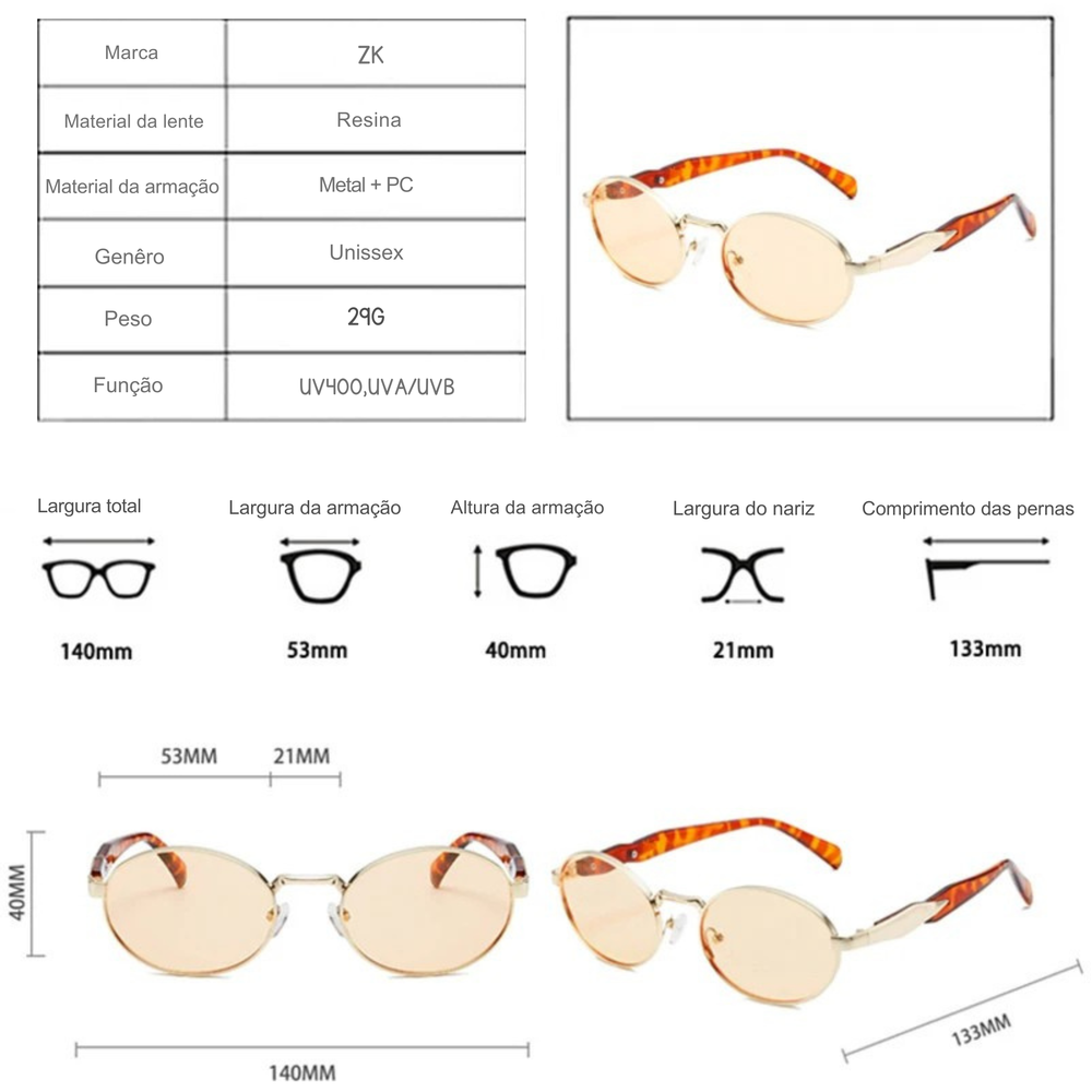 Com armação dourada delicada e hastes em padrão tartaruga, o Lucent traz um equilíbrio perfeito entre classe e atitude. Seu formato oval valoriza o rosto e adiciona um toque refinado a qualquer visual — seja na cidade, na praia ou em viagens inesquecíveis.