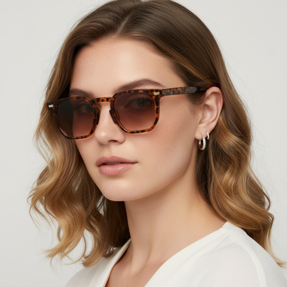 Com armação tartaruga moderna e lentes degradê azuladas, o Solana é aquele toque de cor e charme que transforma qualquer look. Seu design quadrado retrô é atemporal e sofisticado, ideal para quem busca se destacar de forma natural, sem abrir mão do conforto e da autenticidade.
